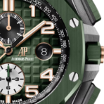 Royal Oak Selfwinding Chronograph 26405CE.OO.A056CA.01 là sự kết hợp hoàn hảo giữa chức năng chronograph tiện ích, chất liệu gốm sứ bền bỉ, và dây đeo cao su xanh năng động, tạo nên một sản phẩm vừa mạnh mẽ lại vừa thanh thoát. Đây là chiếc đồng hồ lý tưởng cho những ai yêu thích phong cách thể thao, hiện đại nhưng vẫn giữ được sự tinh tế và đẳng cấp của thương hiệu Audemars Piguet.