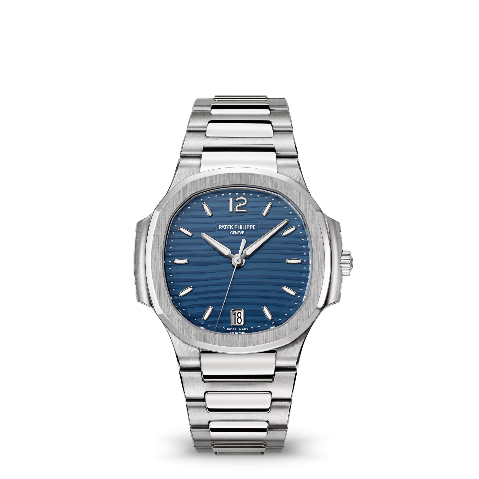 Patek Philippe Ladies Nautilus 7118/1A-001 là hiện thân hoàn hảo của phong cách “Sport-Chic” thượng lưu, một biểu tượng huyền thoại được tái thiết kế đầy nữ tính và quyến rũ. Sở hữu bộ vỏ thép không gỉ cao cấp với kích thước 35.2mm lý tưởng, chiếc đồng hồ nổi bật với vành bezel hình bát giác bo tròn trứ danh được hoàn thiện chải xước mờ và đánh bóng thủ công sắc sảo. Điểm nhấn “đốn tim” các quý cô chính là mặt số màu Xanh Dương (Blue Opaline) thời thượng, được trang trí bằng họa tiết lượn sóng (waves) mềm mại – khác biệt hoàn toàn với sọc ngang mạnh mẽ của phiên bản nam – tạo nên hiệu ứng thị giác uyển chuyển, tựa như những con sóng lấp lánh dưới ánh mặt trời.