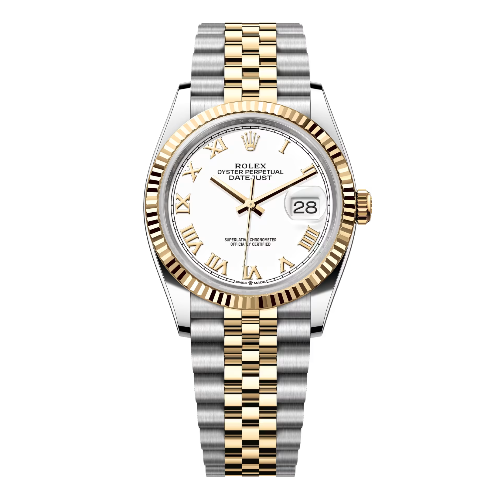 Rolex Datejust 36 126233-0029 là biểu tượng của sự thanh lịch chuẩn mực, mang vẻ đẹp vượt thời gian với sự kết hợp kinh điển của chất liệu Rolesor Yellow – sự hòa quyện giữa thép Oystersteel bền bỉ và vàng vàng 18ct rực rỡ. Nổi bật trên nền mặt số màu Trắng (White) tinh khôi là các cọc số La Mã bằng vàng 18ct được chế tác thủ công tỉ mỉ, tạo nên độ tương phản rõ nét và nét đẹp hoài cổ đầy trang nhã. Vành bezel khía (Fluted bezel) bằng vàng đúc lấp lánh cùng dây đeo Jubilee 5 mối nối hoàn thiện diện mạo sang trọng, biến chiếc đồng hồ thành món phụ kiện đẳng cấp, tinh tế phù hợp cho mọi dịp.
