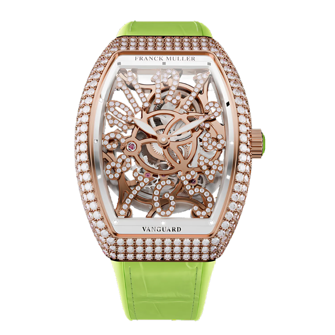 Franck Muller Vanguard™ Lady Slim Skeleton V35 Green Diamond là biểu tượng của sự thanh lịch, quý phái và đẳng cấp, hoàn hảo cho những người phụ nữ muốn thể hiện phong cách cá nhân một cách tinh tế và nổi bật.