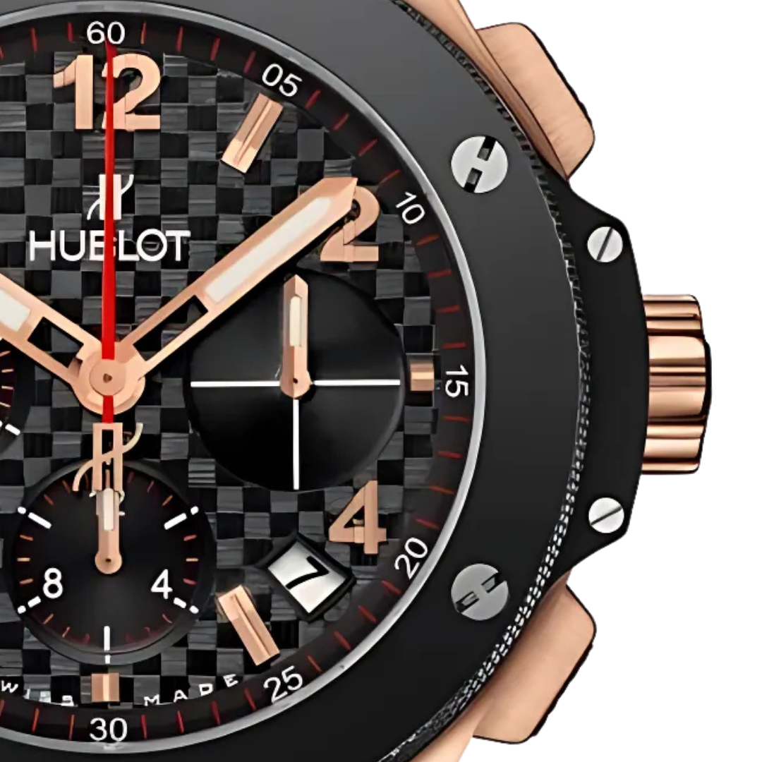Sức hút của chiếc đồng hồ đến từ sự tương phản đầy mê hoặc. Bộ vỏ được chế tác từ Vàng Đỏ 18K tỏa ra sắc ấm nồng nàn, một biểu tượng của sự sang trọng và đẳng cấp truyền thống. Vẻ đẹp rực rỡ này được kìm hãm và tôn vinh bởi vành bezel làm từ Ceramic đen bóng. Vật liệu công nghệ cao này không chỉ mang lại vẻ ngoài hiện đại, nam tính mà còn sở hữu khả năng chống trầy xước gần như tuyệt đối, giúp chiếc đồng hồ luôn giữ được vẻ đẹp hoàn hảo. Nằm bên dưới lớp kính sapphire là mặt số màu đen với họa tiết dập nổi “Carbon Effect”, tạo nên một chiều sâu kỹ thuật và nét thể thao tinh tế.