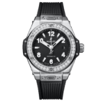 Dây đeo cao su được trang bị khóa cài bằng thép không gỉ chắc chắn. Mẫu Big Bang One Click Steel & Diamonds này không chỉ là một chiếc đồng hồ tự động thanh lịch với bộ máy HUB1120 và khả năng chống nước 100 mét mà còn là một biểu tượng phong cách thời thượng được phái đẹp yêu thích, kết hợp hoàn hảo giữa thiết kế đột phá, hiệu suất ổn định và một nét thẩm mỹ độc đáo, đầy quyến rũ.