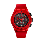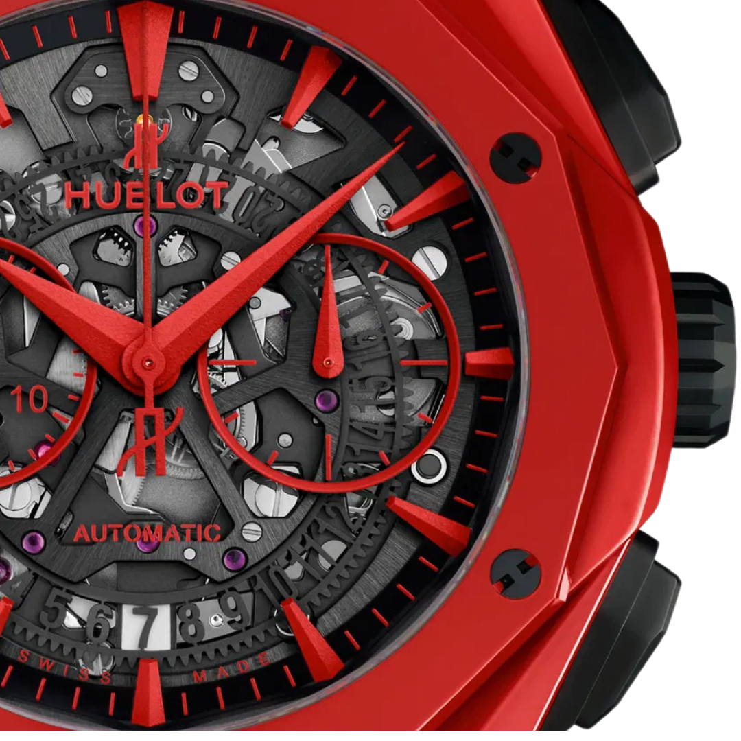 Bộ vỏ 45mm bằng gốm đỏ, với bề mặt được xử lý đặc biệt tạo hiệu ứng đa giác đặc trưng của Orlinski, cùng các chi tiết đánh bóng và chải xước, tạo nên một tác phẩm điêu khắc sống động trên cổ tay. Đi kèm là dây đeo cao su đen có cấu trúc, vừa mang lại sự thoải mái tối ưu, vừa tạo điểm nhấn tương phản đầy ấn tượng với màu đỏ nổi bật. Với khả năng chống nước hiệu quả ở độ sâu 50 mét (165 feet), Hublot Classic Fusion Aerofusion Chronograph Orlinski Red Ceramic là biểu tượng của sự sáng tạo không giới hạn và đẳng cấp cá nhân vượt trội, dành cho những ai khao khát khẳng định phong cách riêng.