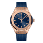 Bên trong, đồng hồ được trang bị bộ máy Quartz HUB2912, đảm bảo độ chính xác cao mà không cần lên dây cót thường xuyên. Với khả năng chống nước 50m, Hublot Classic Fusion King Gold Blue 29mm không chỉ là một món trang sức đẳng cấp mà còn là người bạn đồng hành hoàn hảo cho những ai yêu thích sự tinh tế, sang trọng và tiện lợi trong thế giới đồng hồ cao cấp.